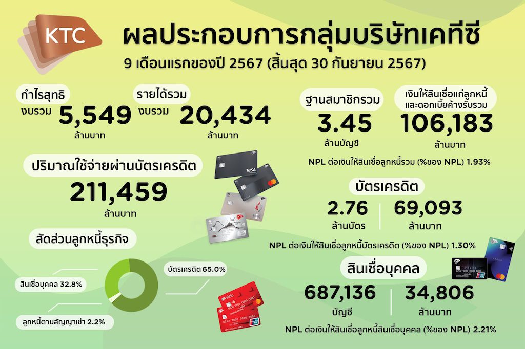 ทั้งนี้ ข้อมูล ณ วันที่ 30 กันยายน 2567 เทียบกับช่วงเดียวกันของปี 2566 เคทีซีมี