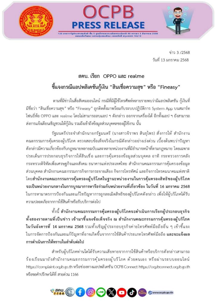 #OPPO #realme #แอปเงินกู้ #สคบ #กสทช #ดีอี #ความปลอดภัย #ข้อมูลส่วนตัว